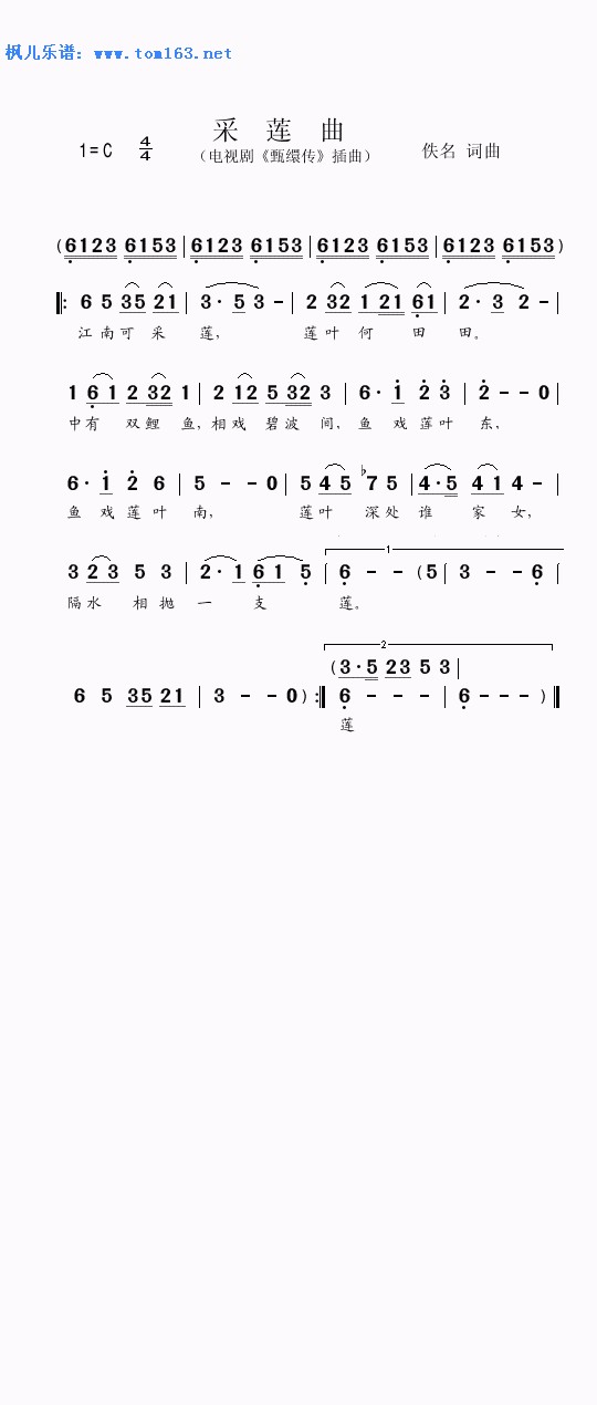 中有双鲤鱼 相戏碧波间 鱼戏莲叶东 鱼戏莲叶南 莲叶深处谁家女 隔水笑抛一枝莲 江南可采莲 莲叶何田田 中有双鲤鱼 相戏碧波间 鱼戏莲叶东 鱼戏莲叶南 莲叶深处谁家女 隔水笑抛一枝莲