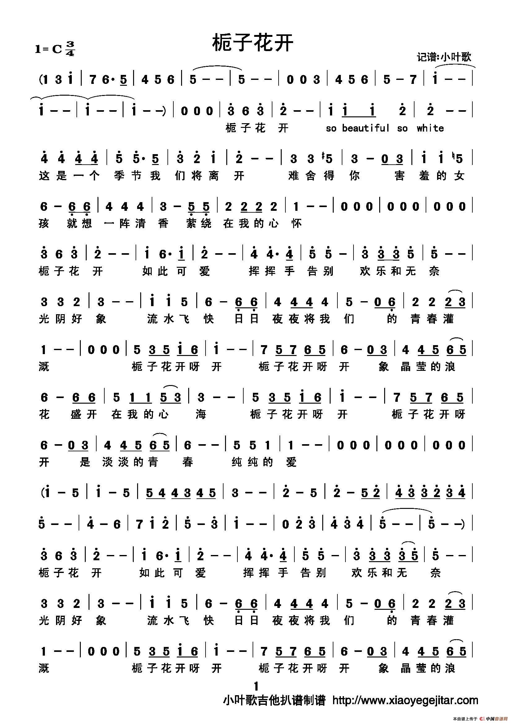 So beautiful so white 这是个季节 我们将离开 难舍的你 害羞的女孩 就像一阵清香 萦绕在我心怀 栀子花开呀开 栀子花开呀开 暖暖的情花盛开在我的心海 栀子花开呀开 栀子花开呀开 是淡淡的青春 纯纯的爱 (谢谢!栀子花送给你们) 栀子花开 如此可爱 挥挥手告别 欢乐和无奈 光阴好像 流水飞快 日日夜夜 将我们的青春灌溉 栀子花开呀开 栀子花开呀开 像晶莹的浪花 盛开在我的心海 栀子花开呀开 栀子花开呀开 是淡淡的青春 纯纯的爱 栀子花开呀开 栀子花开呀开 像晶莹的浪花 盛开在你的心海 栀子花开呀开 栀子花开呀开 是淡淡的青春 纯纯的爱